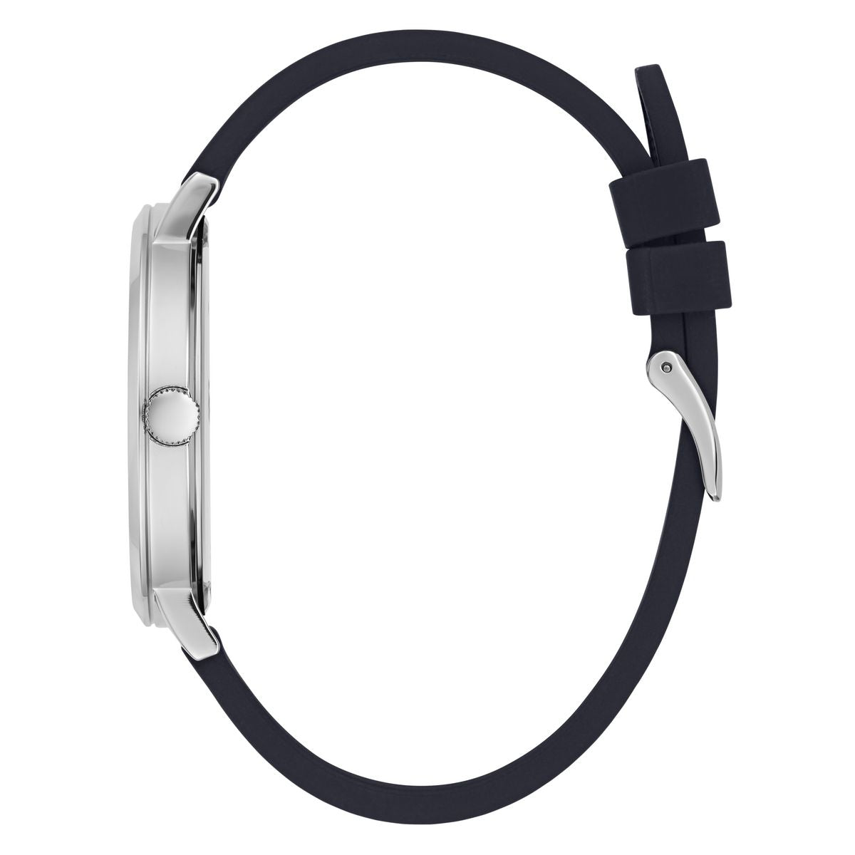 El GUESS GW0625G1 es un reloj analógico para hombre de color azul marino y plateado con una caja de acero inoxidable de 44 mm y una correa de silicona azul marino. Cuenta con una esfera estilo monograma con un patrón de logotipo de cubo en 3D, un acabado pulido y un diseño elegante y moderno. El reloj es resistente al agua hasta 30 metros y funciona con movimiento de cuarzo.