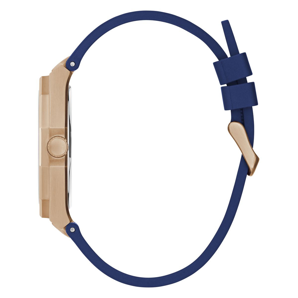 El GW0663G3 es el reloj para hombre Guess Asset Quartz Blue Dial. Cuenta con una caja de acero inoxidable de 42 mm, una correa de silicona azul y un bisel en tono dorado. El reloj tiene marcadores de hora con números romanos, manecillas luminiscentes y un cristal mineral resistente a los arañazos. Está diseñado tanto para el estilo como para la durabilidad, con una resistencia al agua de 50 m.