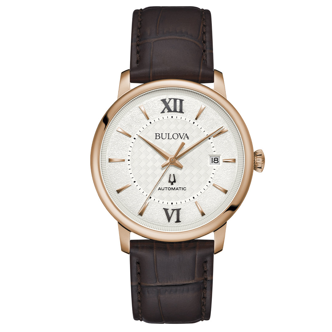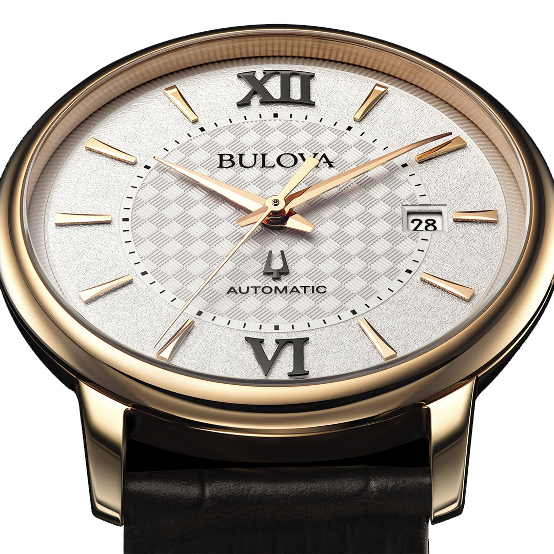 En su interior, late un movimiento automático de 21 joyas con una reserva de marcha de 42 horas. La correa de cuero marrón, equipada con barras de resorte de liberación rápida para facilitar los cambios y un cierre de 3 piezas para una comodidad óptima, complementa a la perfección este reloj de lujo. Cuando solo lo mejor es suficiente, el Bulova Hudson es la elección perfecta.