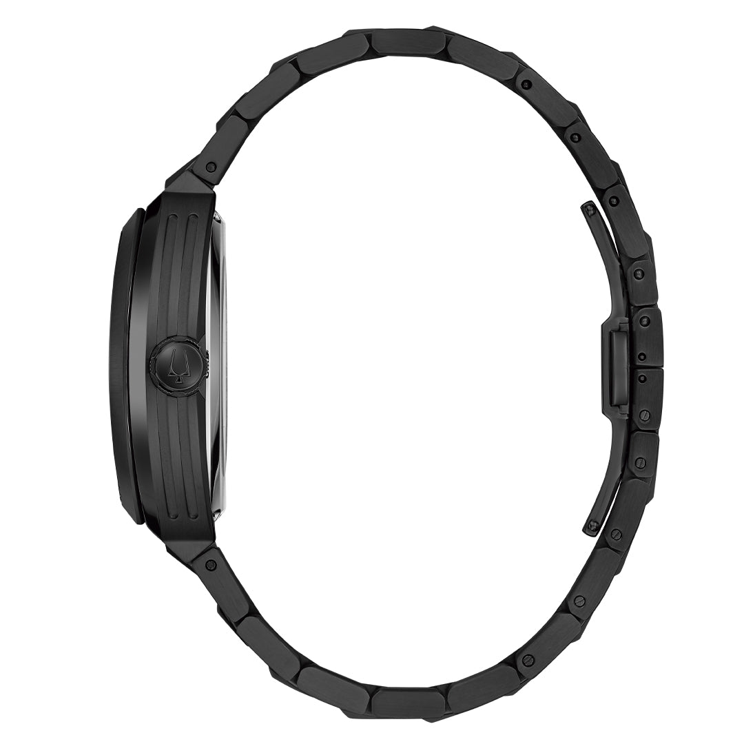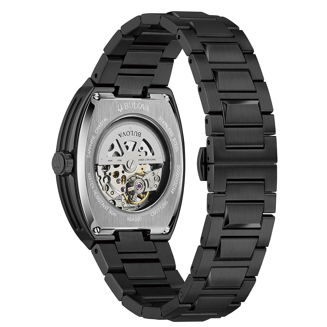 Este reloj Bulova para hombre, de la colección Maquina, ofrece un diseño vanguardista y audaz. Cuenta con una caja de acero inoxidable negra de 40 mm con cristal de zafiro curvado, bisel negro y brazalete de acero inoxidable negro con cierre desplegable con pulsador. La esfera de color jaspeado presenta agujas negras e índices plateados con relleno luminiscente, además de una ventanilla central que revela el mecanismo interno del movimiento automático esqueletizado de 21 rubíes, con una reserva de marcha de 42 horas, visible también a través del fondo transparente. Con su corazón mecánico y su forma moderna e inigualable, este reloj Bulova para hombre ofrece una expresión de estilo única y personal.
