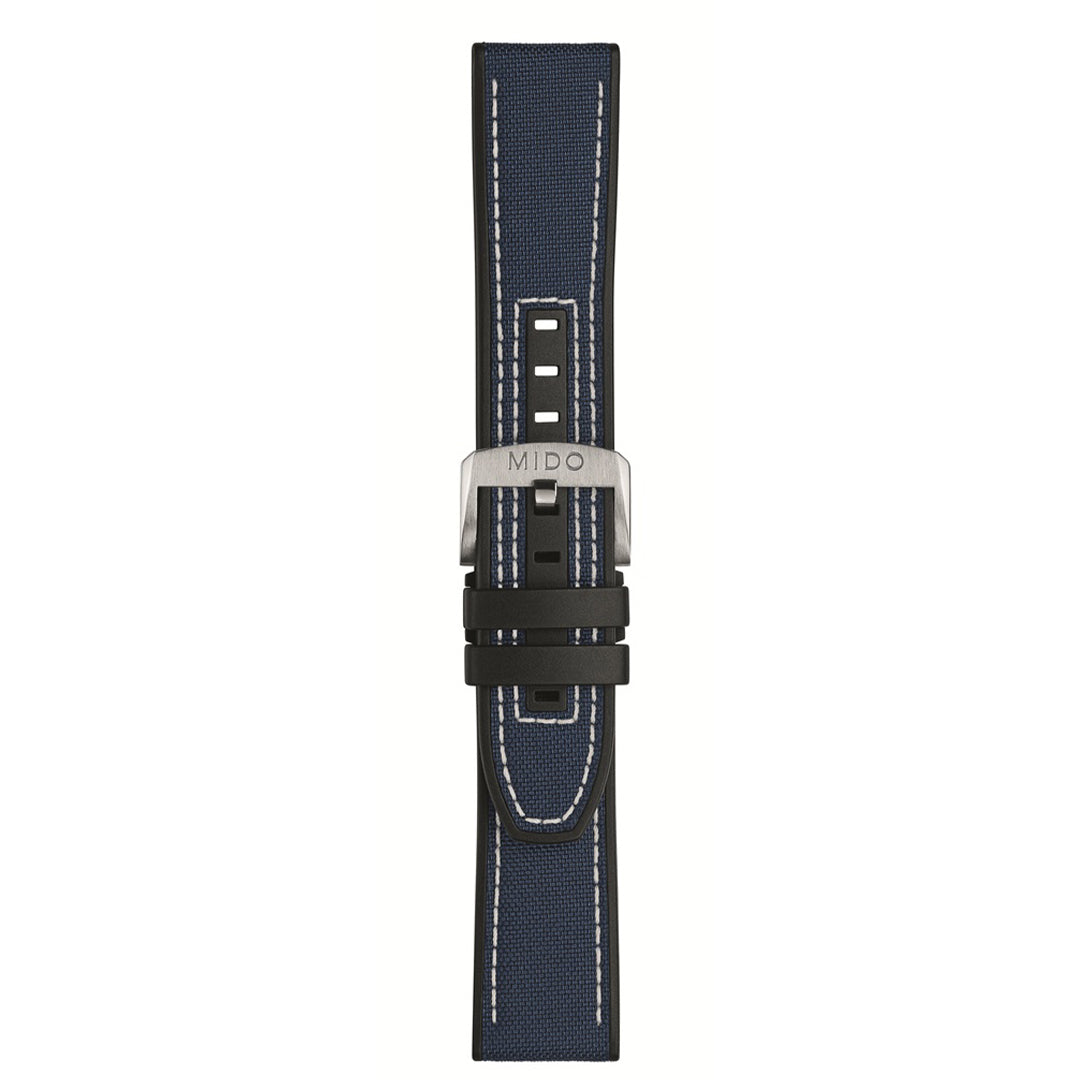 Diseñada para el modelo Multifort III (M038.430.17.041.00), esta correa azul de 22/20 mm ofrece un estilo único y versátil.