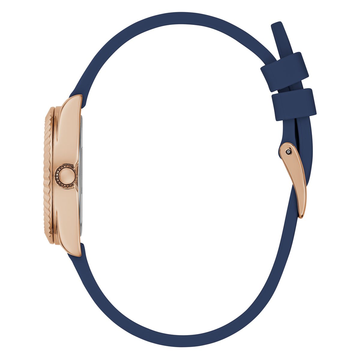 El reloj Guess GW0692L2 Mini Luna es una combinación perfecta de estilo y funcionalidad, diseñado para mujeres que buscan un accesorio moderno y versátil. Su correa de silicona en tono azul aporta comodidad y un diseño fresco, ideal para el uso diario. Con una caja de 5 cm de ancho y una correa de 19 cm, este reloj ofrece un ajuste cómodo y seguro para cualquier