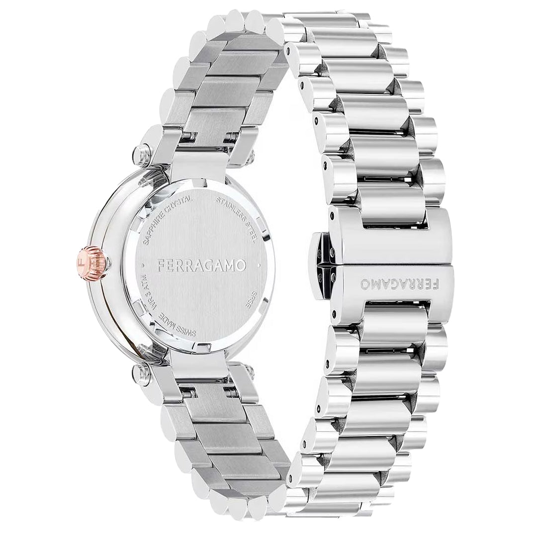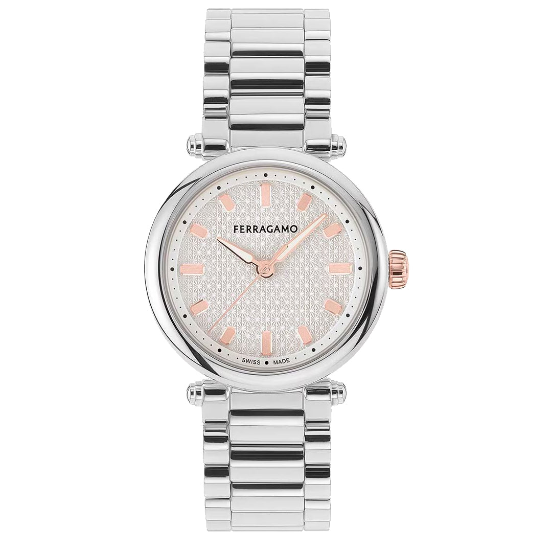 Presentamos el Ferragamo Softy SFSE00224, un exquisito reloj diseñado para la mujer moderna que aprecia la elegancia discreta y el lujo contemporáneo. Perteneciente a la colección "Softy" de Salvatore Ferragamo, esta pieza combina una silueta suave y redonda con detalles metálicos llamativos, creando un accesorio que es tan cómodo de llevar como impactante a la vista.