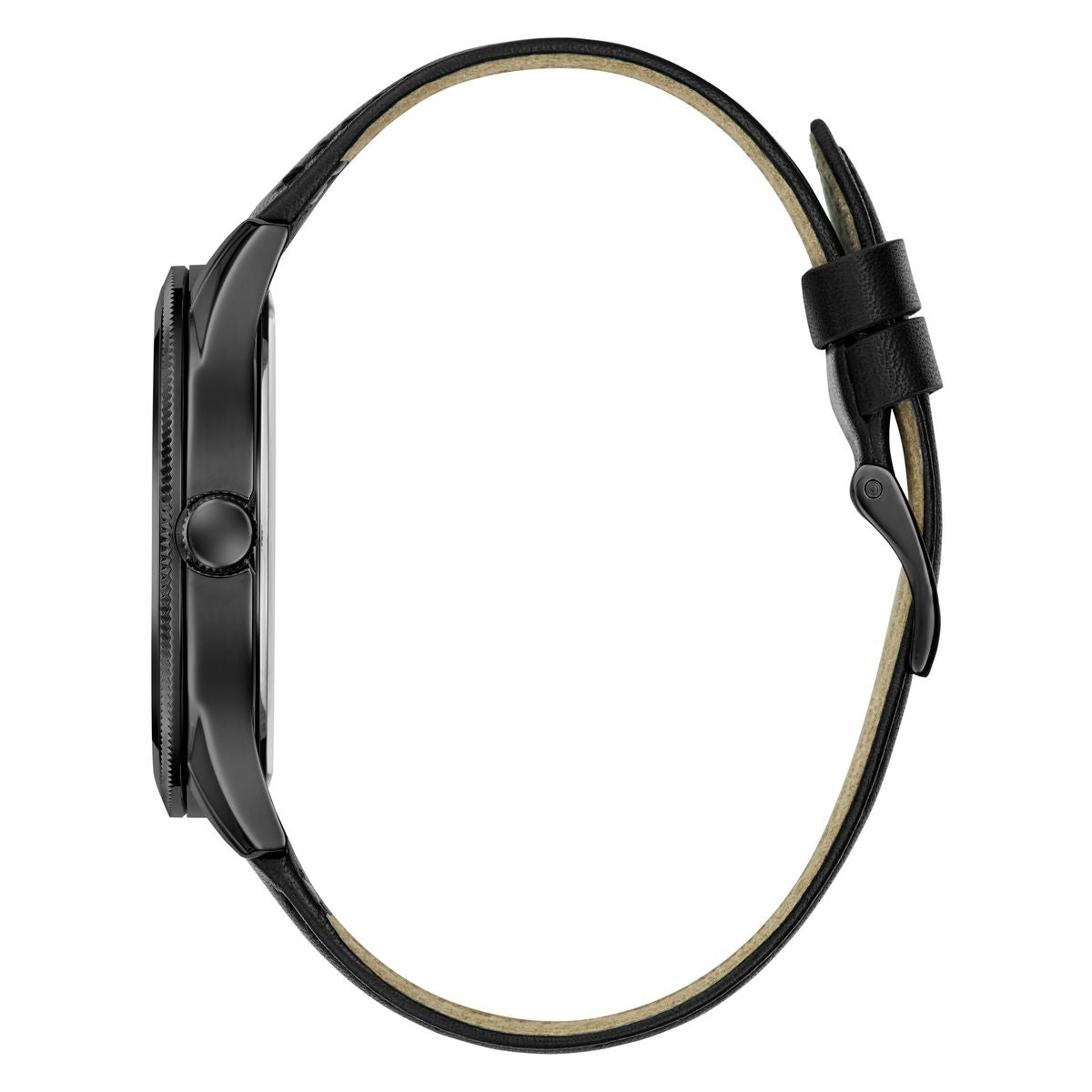 Es un sofisticado reloj de vestir con un patrón texturizado refinado tanto en el bisel como en la esfera negra. La caja y la correa también son negras, lo que le da un aspecto elegante y monocromático.