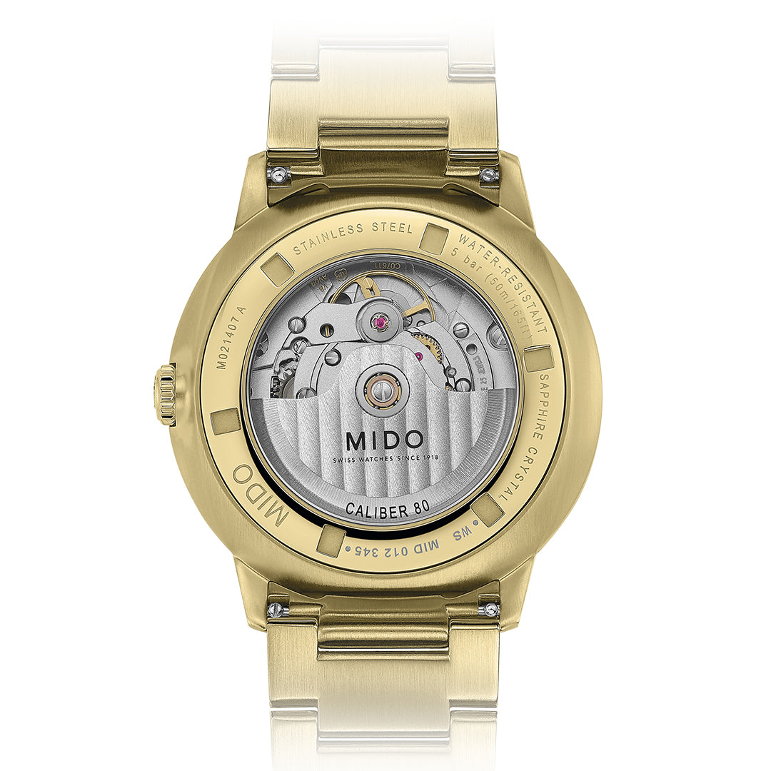 Con el reloj suizo Commander Gradient, la mecánica relojera se hace visible gracias a una esfera acrílica transparente, una primicia en esta icónica colección. Los componentes del Calibre 80 pueden admirarse tanto en el lateral de la esfera como en la trasera gracias a un fondo de caja transparente. Adornada con un original efecto ahumado degradado, la esfera se vuelve cada vez más opaca en los bordes, mientras que la fecha a las 3 destaca a la perfección.