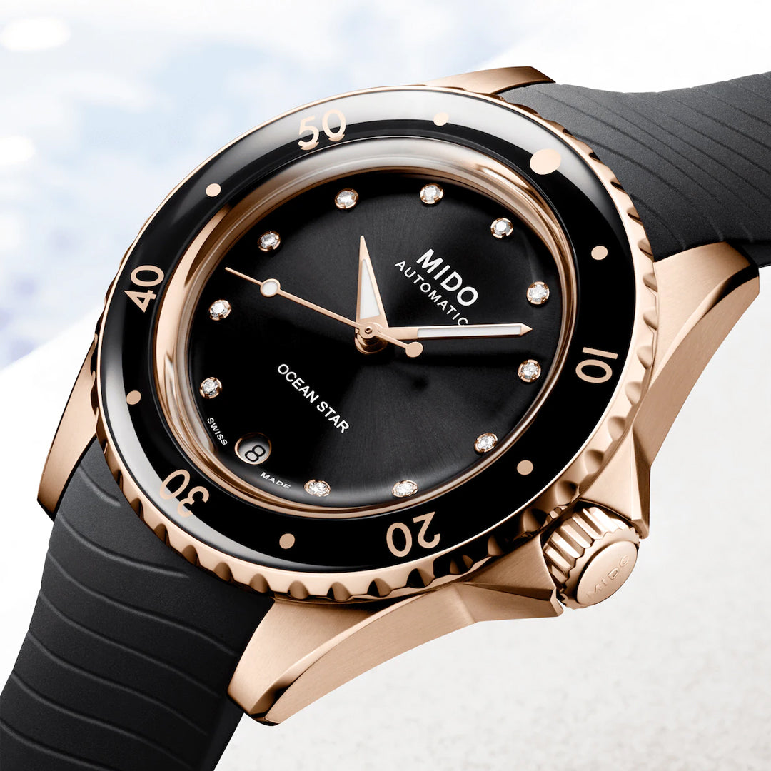 Con un estilo de reloj de buceo inspirado en los años sesenta y una caja de acero inoxidable de 36,5 mm de diámetro, se adapta a todas las muñecas. Ergonómico y deportivo, el Ocean Star 36.5 combina los códigos de los relojes de buceo con una estética refinada, desafiando al tiempo con su movimiento automático suizo que ofrece hasta 80 horas de autonomía. Está protegido por un cristal de zafiro tipo caja de cristal que evoca el encantador plexiglás de los años sesenta. Un fondo de caja atornillado contribuye a su extraordinaria resistencia al agua, hasta una presión de 20 bares.
