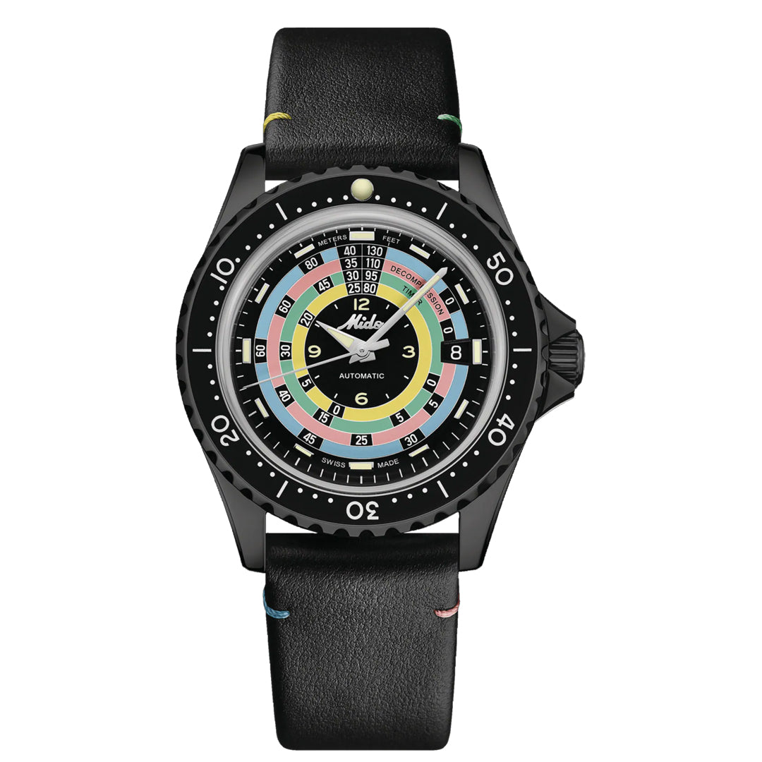 MIDO rinde homenaje a la colección Ocean Star. Con una sutil referencia al pasado, el reloj suizo Ocean Star Tribute reinterpreta los códigos estéticos de los modelos de buceo de la década de 1960. Está equipado con el movimiento automático Calibre 80 con hasta 80 horas de reserva de marcha, es resistente al agua hasta una presión de 20 bares (200 m/656 pies) y cuenta con una correa única que ofrece la máxima comodidad.