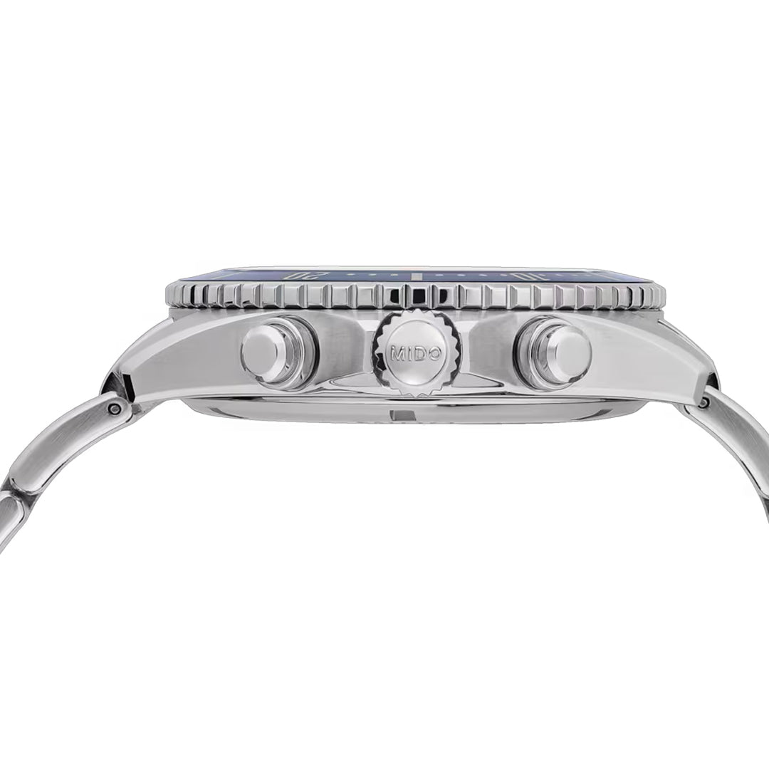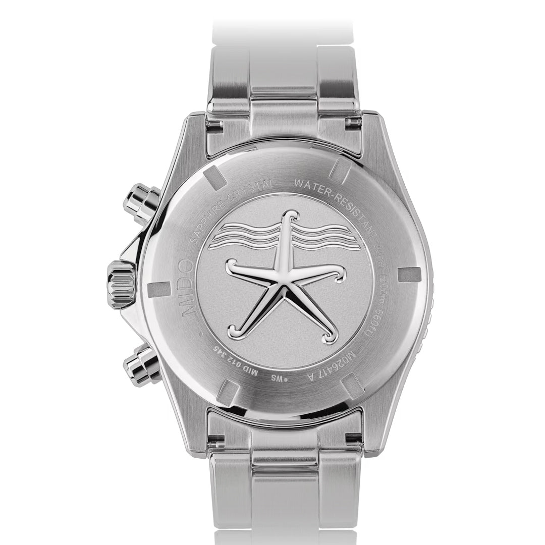 Con un aspecto deportivo y una presencia poderosa en muñecas atléticas, este reloj Ocean Star Swiss está equipado con un movimiento de cronógrafo de cuarzo, una característica única en esta colección de relojes de buceo dedicada al mundo marino.