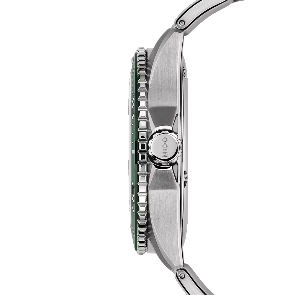 Mido ha llevado la cerámica, uno de los materiales más destacados de la relojería, al bisel giratorio unidireccional de su reloj deportivo suizo Ocean Star 200C. La cerámica es un material extremadamente duradero y resistente a los arañazos, lo que lo hace ideal para un reloj de buceo.