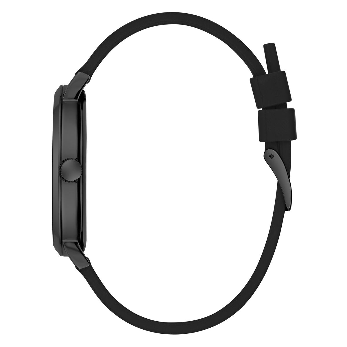 El Guess GW0503G3 es un elegante reloj analógico para hombre con un diseño moderno. Cuenta con una caja de acero inoxidable pulido de 44 mm y una correa de silicona negra lisa, lo que le da un aspecto elegante y cómodo. La esfera es negra con marcas minimalistas, protegida por una lente de cristal mineral duradera. Es resistente al agua hasta 30 metros, lo que lo hace adecuado para el uso diario, pero no para nadar o bucear